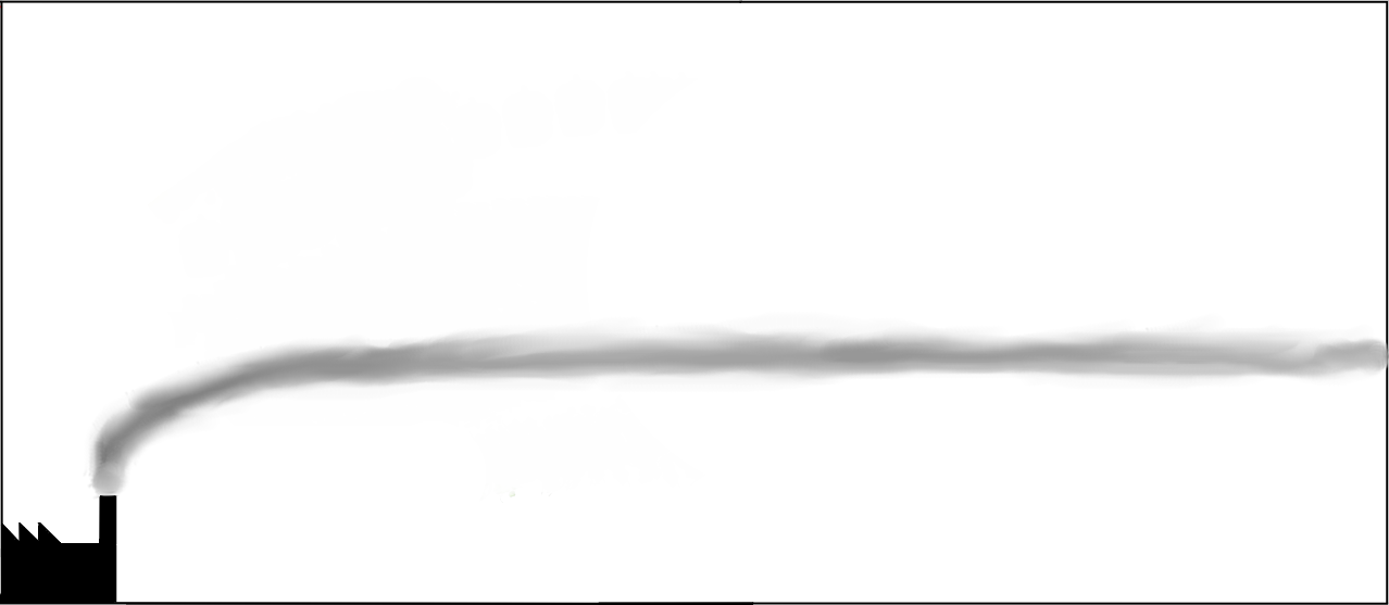 Anhand eines Fabrikschornsteins werden die unterschiedlichen Ausbreitungstypen erläutert. Ursache für die Ausbreitung kann natürlich auch ein Brandereignis oder ein austretender Gefahrstoff sein.