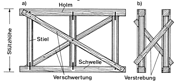 Werden mehrere einfache, lotrechte Stützen nebeneinander gesetzt, sind sie miteinander zu verstreben