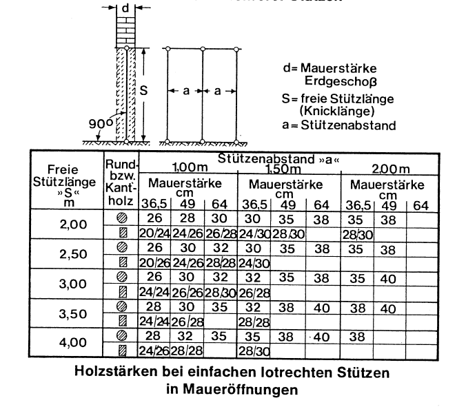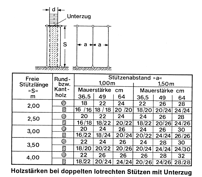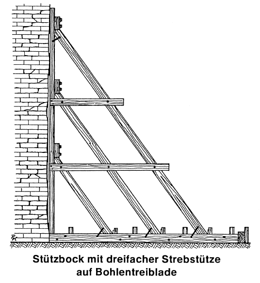 Bei Ausbuchtungen des Mauerwerks sind Strebstützen darunter anzusetzen