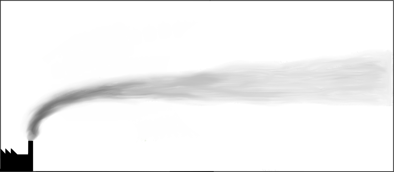Anhand eines Fabrikschornsteins werden die unterschiedlichen Ausbreitungstypen erläutert. Ursache für die Ausbreitung kann natürlich auch ein Brandereignis oder ein austretender Gefahrstoff sein.