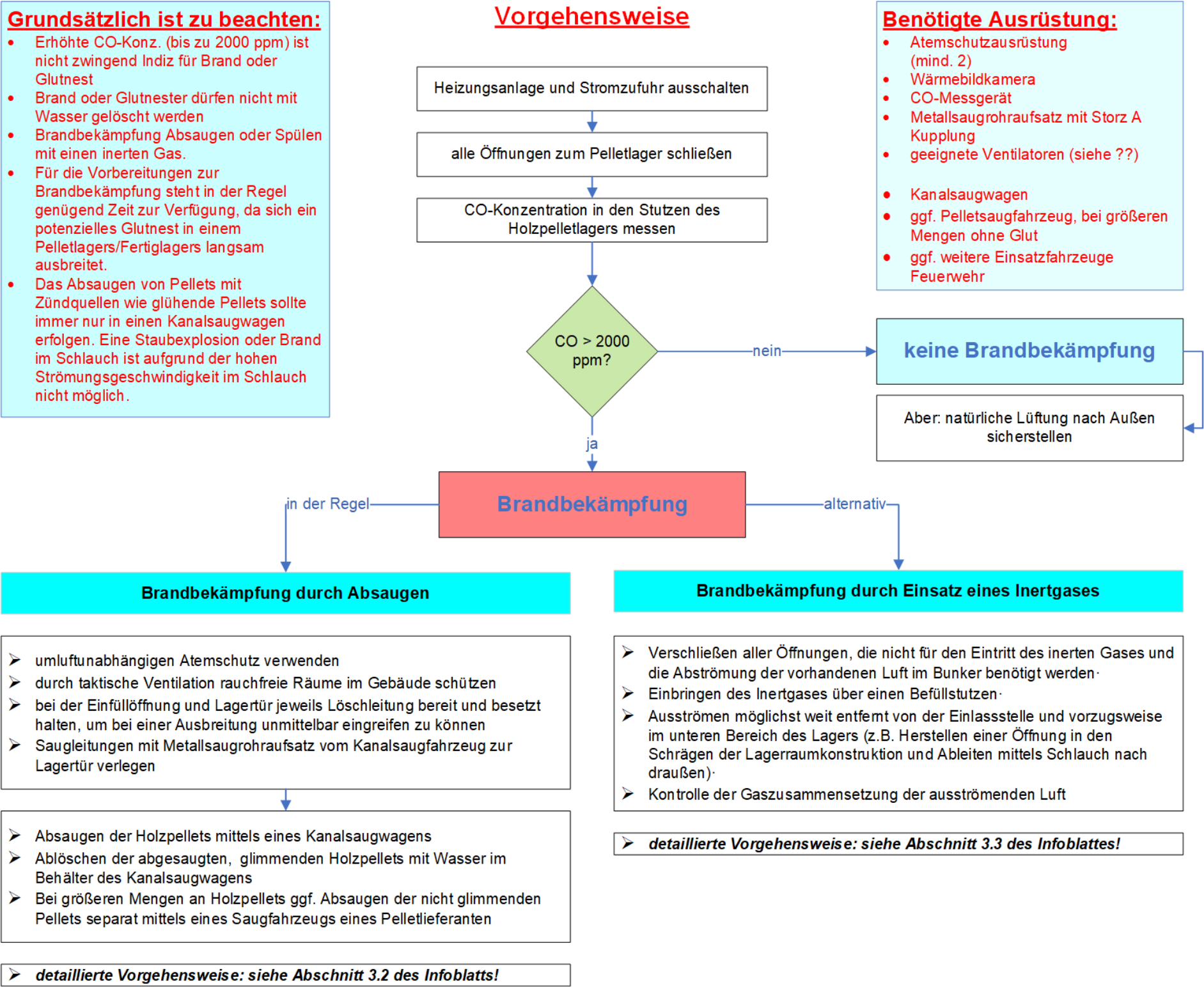 - Bei großen Pelletmengen Absaugen der nicht glimmenden Pellets mittels Saugfahrzeugs eines Pelletlieferanten